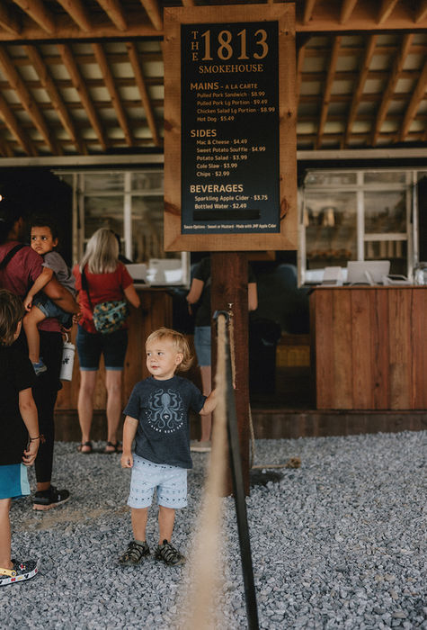 Step into a world of smoky flavors at the 1813 Smokehouse, proudly brought to you by Jeter Mountain Farm since 2021. The Smokehouse is open every day that the orchard is, and serves from 11a - 4:30p. Each bite is steeped in tradition and crafted with care - we hope that your family will come share a meal with us!